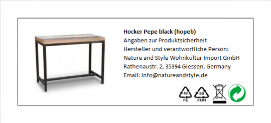 Passender Hocker zu unserem Pepe Tisch, jetzt auch mit dunklem Gestell. Oben drauf eine kräftige Platte aus recyceltem Holz mit Farbresten.