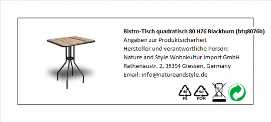 Bistro-Tisch quadratisch 80 H76 Blackburn