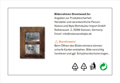 Auf vielfachen Wunsch präsentieren wir hier die Weiterentwicklung unserer erfolgreichen Streetwood-Serie. Schlichter Rahmen für 2 Bilder aus alten Hölzern ohne Farbreste, leicht angeraute Oberfläche.