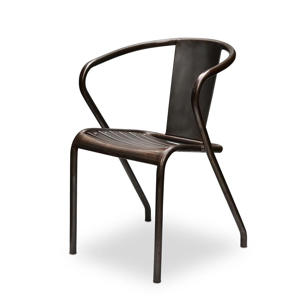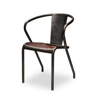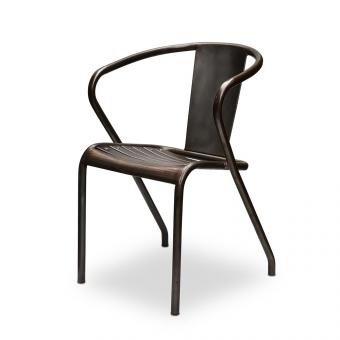 Bequemer Armlehnstuhl aus Eisen, wahlweise mit Metall- oder Teakstreben.