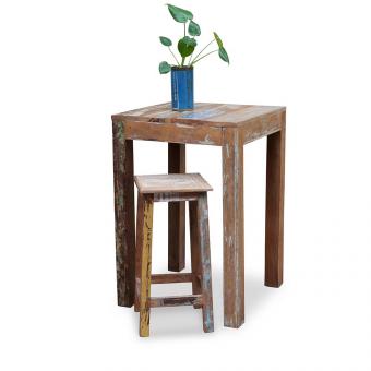 Bartisch aus Fundholz, Block-Design. (Hocker separat erhältlich.)