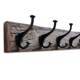 Kleiderhakenleiste aus recyceltem Teak Holz ohne Farbreste (recyceltes Holz aus Abbruchhäusern und anderen Quellen in bester, abgelagerter Qualität). Ausgestattet mit einer rückseitigen Aufhängung.