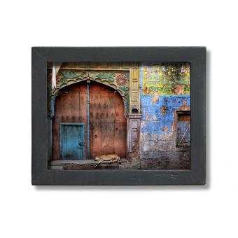 Filigraner Bilderrahmen mit schwarzen Leisten.