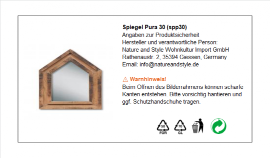 Spiegel mit "Dach" aus naturfarbenem Altholz
