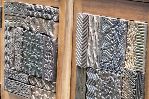 Sideboard mit Schmuckelementen aus alten Textildruck-Stempeln.