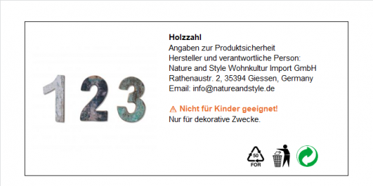 Dekorative Zahl aus recyceltem Holz.