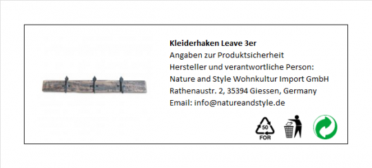 Kleiderhaken Leiste aus recyceltem Altholz mit 3 Haken. Die Haken sind aus geschmiedetem Metall in Form von kleinen Blättern.