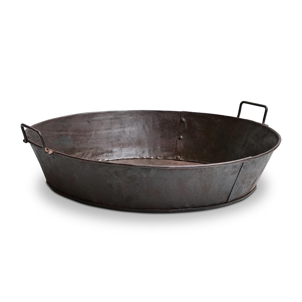 Stattliche Pfanne aus genietetem Eisen.