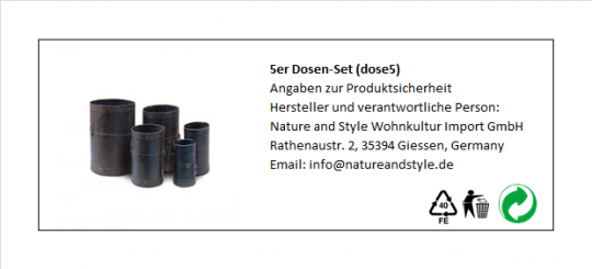 Größenangabe bezieht sich auf die größte Dose im Set.
