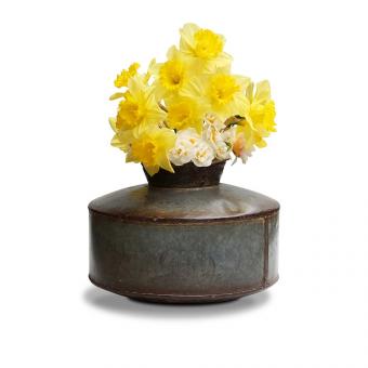 Sehr schöne alte Vase mit gewölbtem Boden. Für Schnittblumen empfehlen wir, ein wasserdichtes Gefäß einzusetzen.